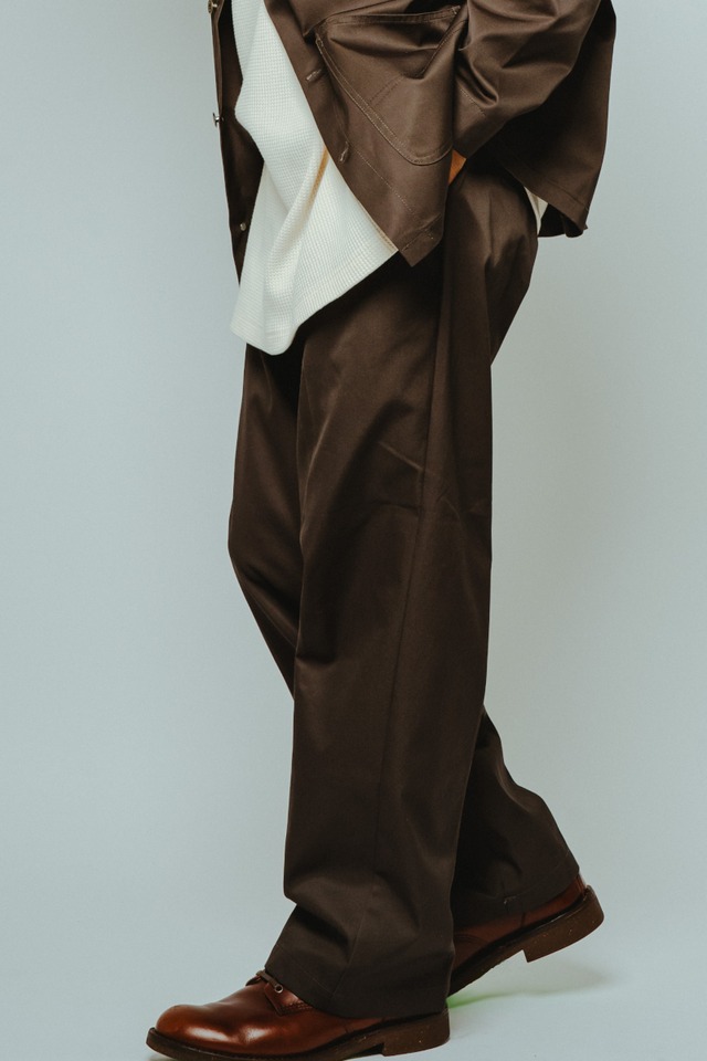 Note 》 長く愛されてきたピンタックチノを、より実用的でワークウェアらしい仕様へとアップデート。定番モデル【TC Twill No Tack Chino Work Pants / 102337200】同様、縦糸に制電性素材を織り込み、着用時の静電気や埃の付着を軽減しました。乾燥しやすい季節でも快適に着用できる、見えない部分まで配慮した一本です。 従来のピンタックチノを知る人にも、新たに選ぶ人にも提案したい、BIGMIKEの“次の定番”としての一本。 --------------------------------------------- Size 》 ウエスト/股上/股下/ワタリ巾/裾巾 30inch:80cm/28cm/73cm/33cm/19cm 32inch:85cm/29cm/74cm/34cm/20cm 34inch:90cm/30cm/75cm/35cm/20cm 36inch:95cm/31cm/76cm/36cm/21cm Data 》 Size:30~36inch Quality:Polyester-65% Cotton-35% Made In China ※サイズ表記は目安です。製品ごとに多少の誤差が生じるほか、予告なしに仕様が変更となる場合があります。 ※ご使用のモニター環境により、実際の色味と異なって見える場合があります。 予めご了承ください。 --------------------------------------------- No. 101837000 Name. ニュー ピンタック チノパンツ