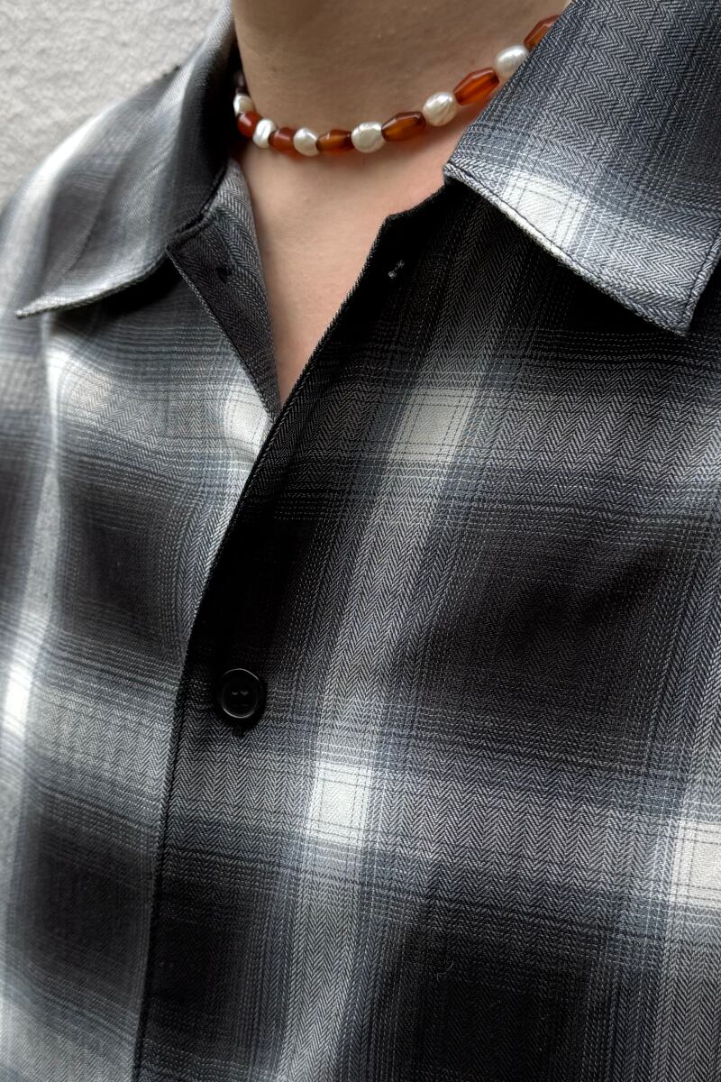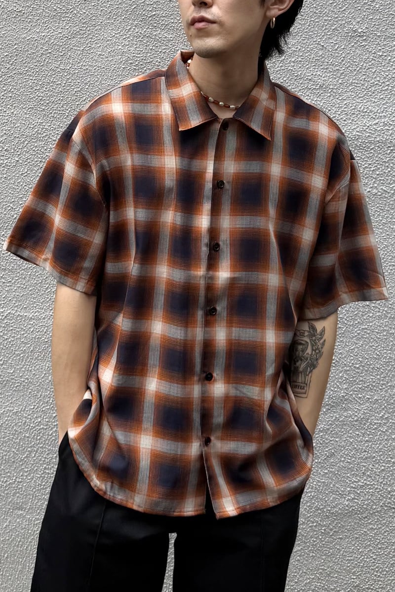 ゆったりとした空気感が魅力の、ルーズフィット半袖オンブレシャツ。薄手のコットン100%素材を使用し、肌にまとわりつかず、夏の暑さにもストレスフリーな着心地。オンブレチェックの落ち着いたトーンは、都会的でありながらどこか懐かしさを感じさせる仕上がりです。