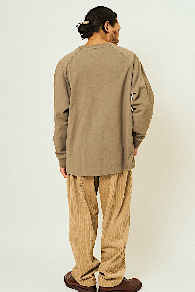 10オンスの肉厚なコットン生地を使用した、存在感のあるロングスリーブTシャツ。まるでスウェットのようなタフさと、Tシャツらしいラフな着心地を兼ね備えた、中間的ポジションの1枚です。