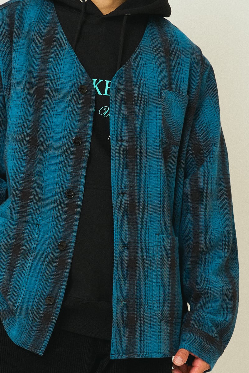 肉厚でしっかりとしたフランネル生地を贅沢に使用したカーディガンタイプ。従来のワークシャツに見られるタフなディテールを取り入れつつ、羽織りとして使いやすいデザインに仕上げました。