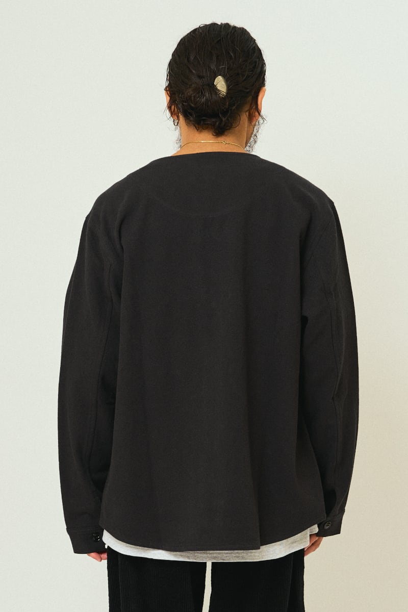 素材には風合いを活かす“インド綿”を採用。猫目ボタンや2本針巻き縫いなど、ヴィンテージワークを感じさせる細かなディテールもポイントです。現代的なシルエットに落とし込み、シンプルながらも存在感のある仕上がりになっています。