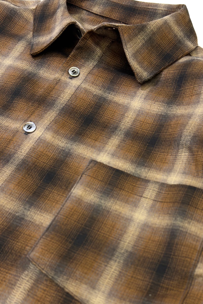 深みのあるオンブレチェックは、都会的でありながらヴィンテージライクな雰囲気を演出。どこか懐かしさを感じさせる色合いが、シンプルなスタイリングにも自然に馴染みます。【パンツとのセットアップにも対応】