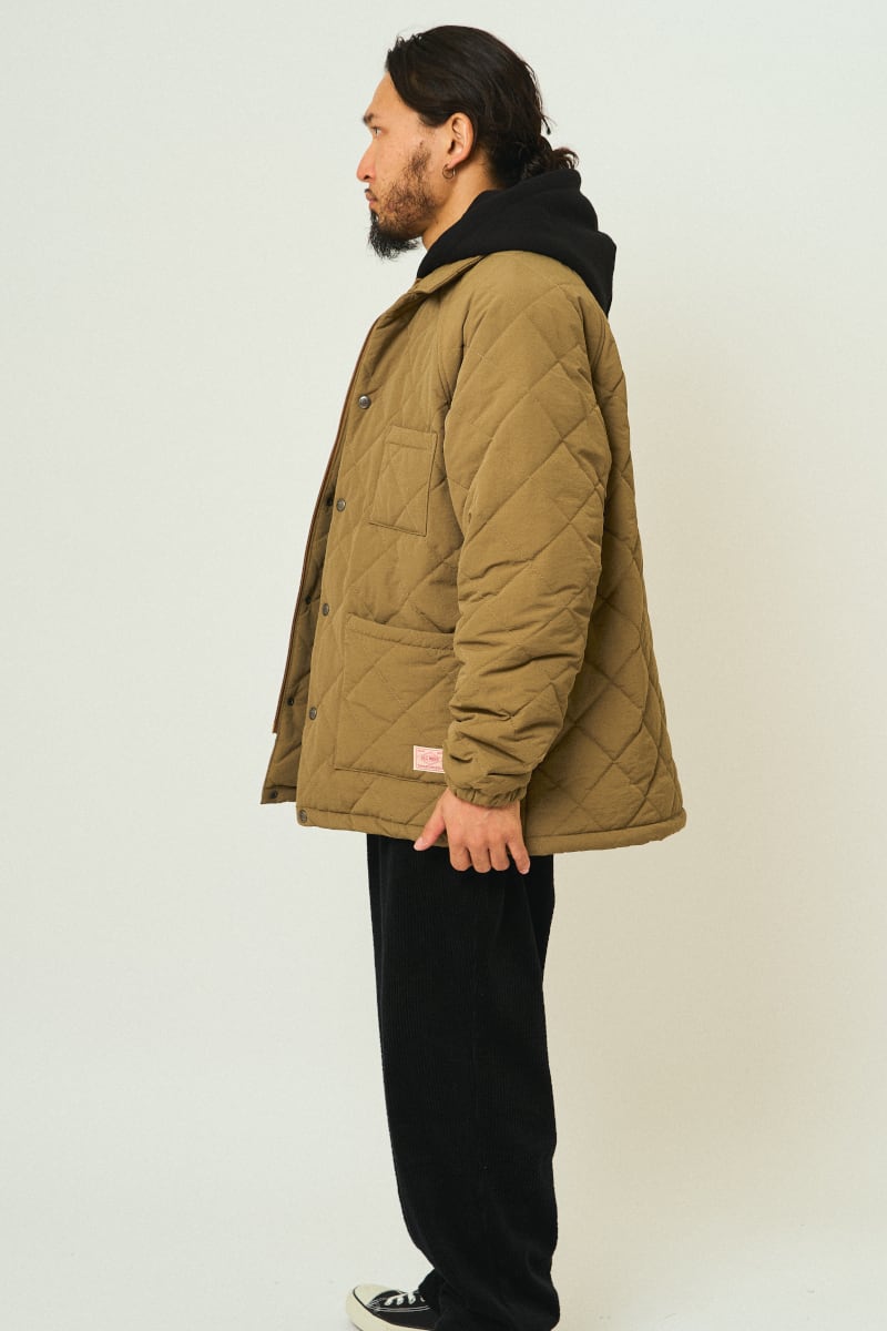 カバーオールとコーチジャケットを掛け合わせた、BIGMIKEらしいオリジナルデザインの中綿入りキルティングジャケット。程よいボリューム感で防寒性を備えながらも、軽快に羽織れるシルエットに仕上げました。