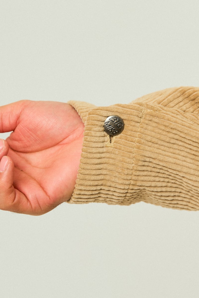 無骨さを感じさせる3本針ステッチや、オリジナルの刻印ボタンなど、BIGMIKEが大切にしてきた“リアルワーク”のディテールも健在。ワークウェアらしい力強さの中に、日常に馴染む軽さと温かみを併せ持つカバーオールです。