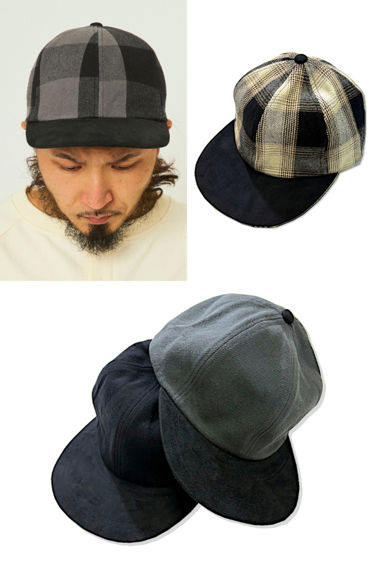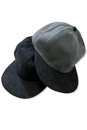 ブリム(つば)にはスウェード調の異素材を組み合わせ、さりげなく奥行きをプラス。フロントパネルには芯を通さないことで、柔らかく包み込むような被り心地を実現しました。