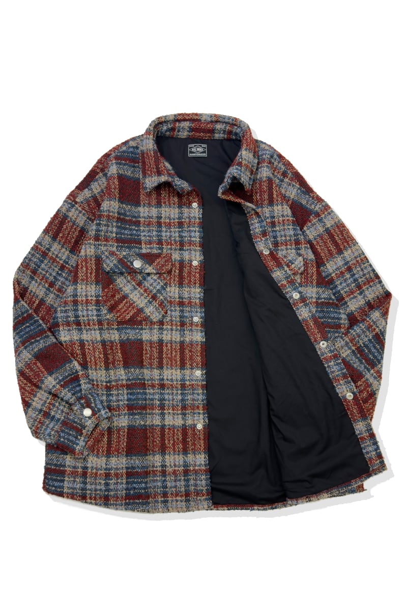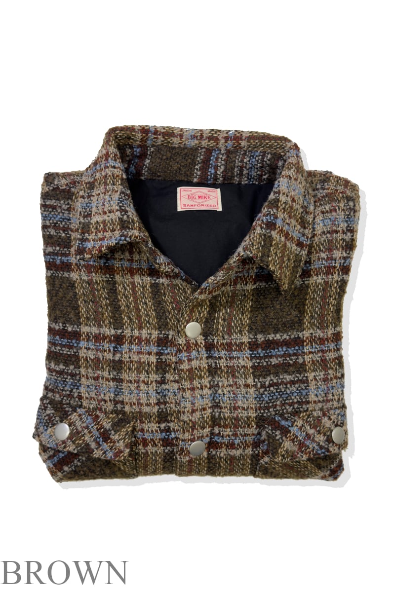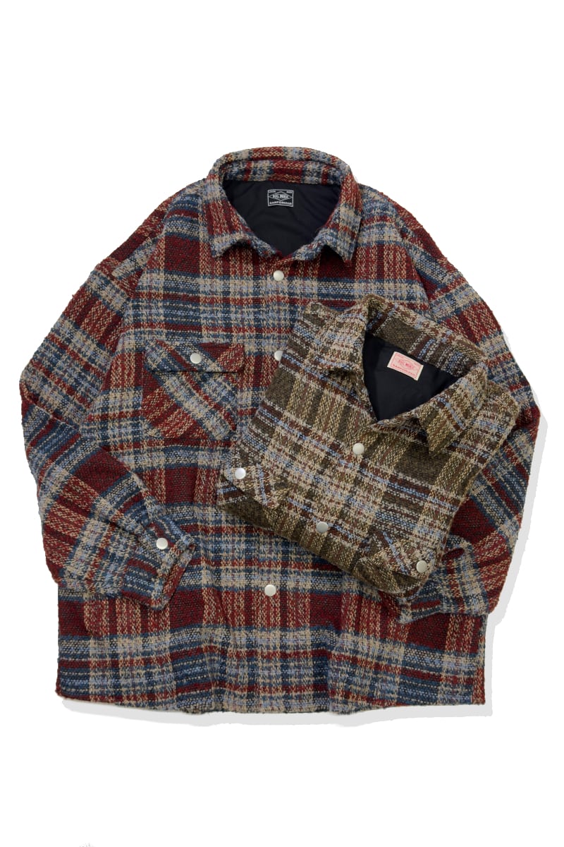 ウール混のブークレ生地を使用した、柔らかくも存在感のあるCPOジャケット。ふっくらとした肉厚のチェック素材が季節感を引き立て、軽アウターとしても主役になる一枚です。