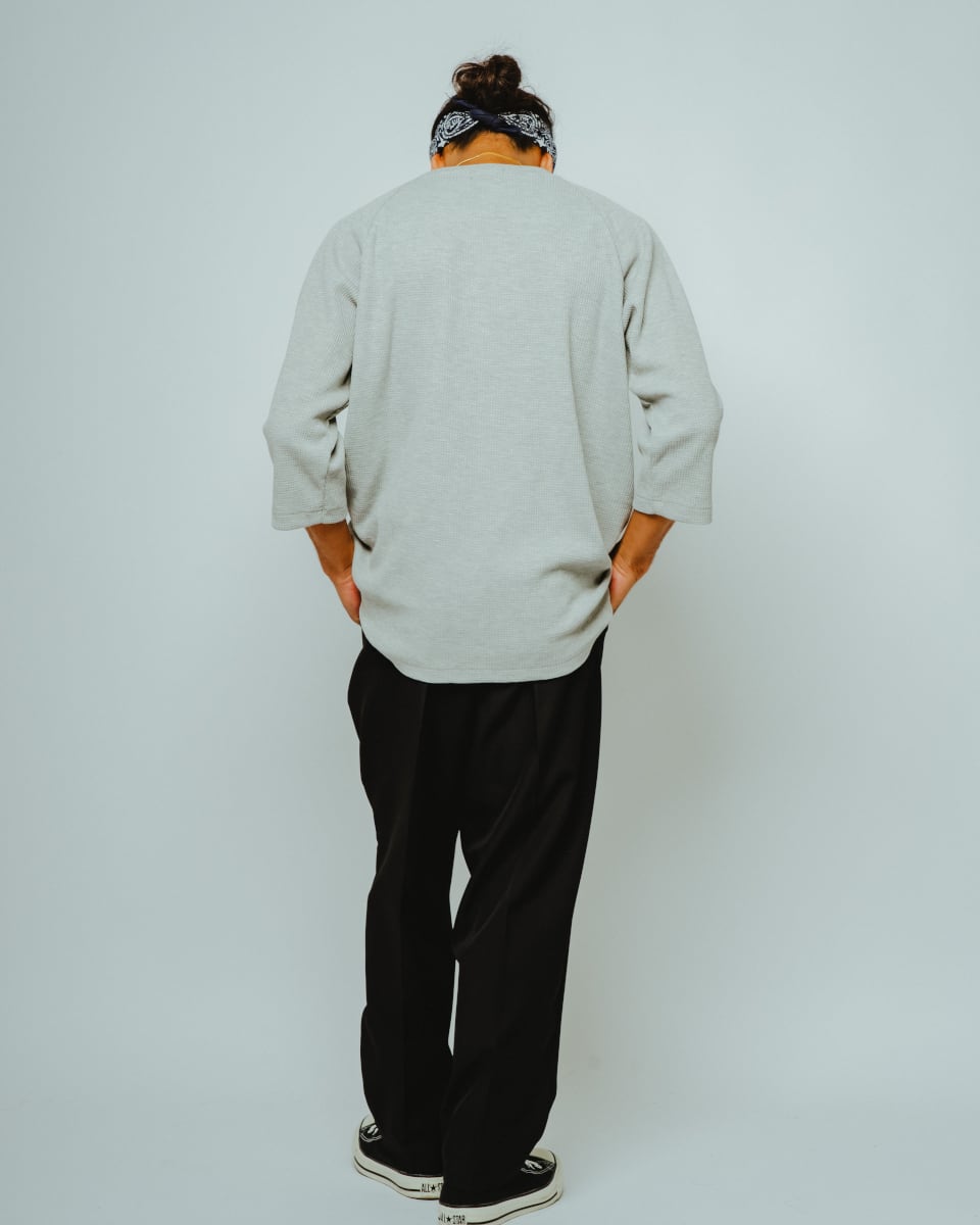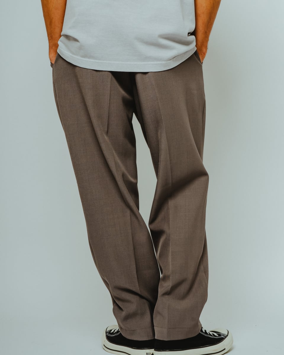 薄手で通気性に優れたトロピカル素材を使用。シャリ感のあるドライタッチな質感に加え、落ち感のある表情がスラックスライクな上品さを演出します。高温多湿な真夏でも快適で、きれいめなスタイルにも対応可能です。