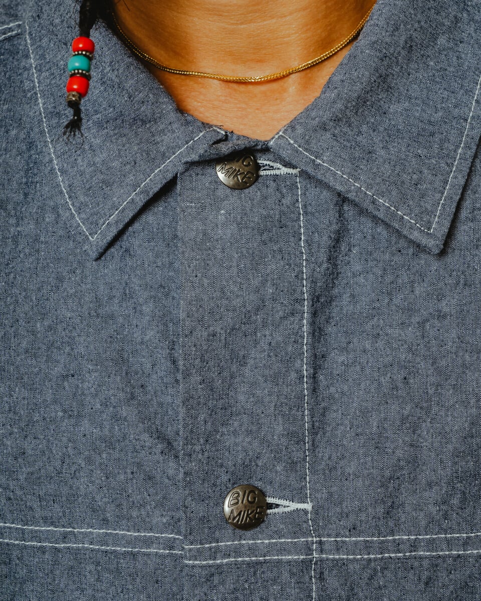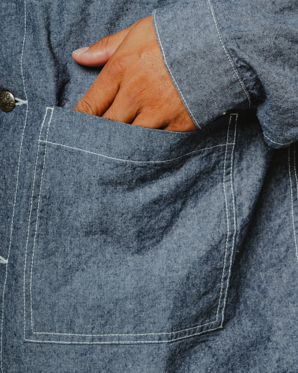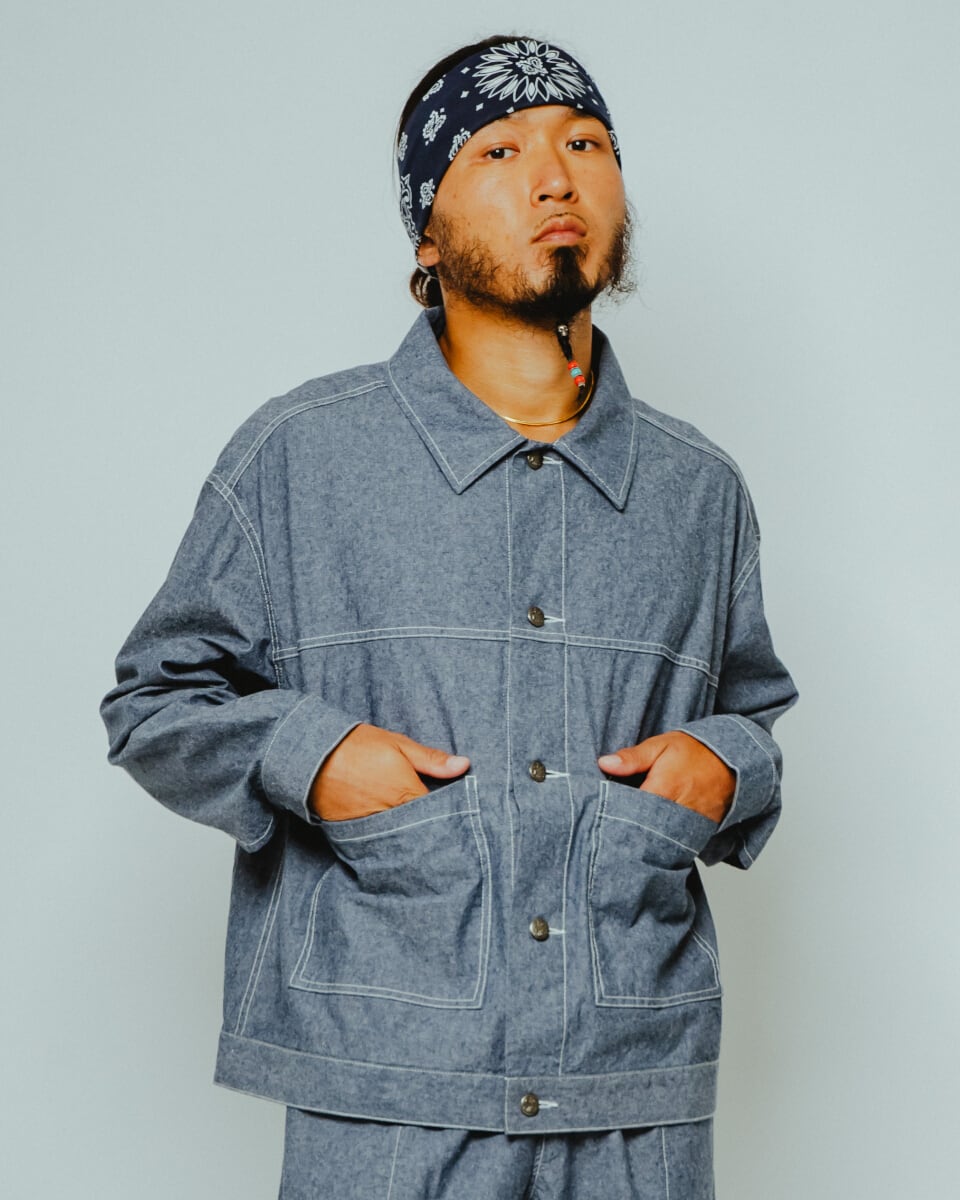 同素材のパンツ(別売り)と合わせれば、清涼感のあるワークセットアップが完成。クラシックなアメリカンワークを、現代のタウンユースへ昇華します。