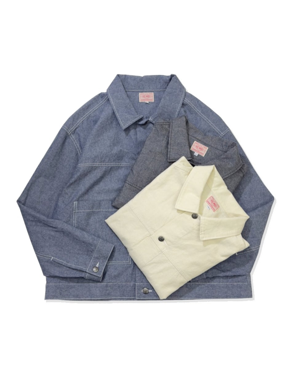 「デニムジャケットほど重くなく、シャツ一枚では心許ない」そんな春から初夏の端境期に最適なのが、このシャンブレーショートジャケットです。