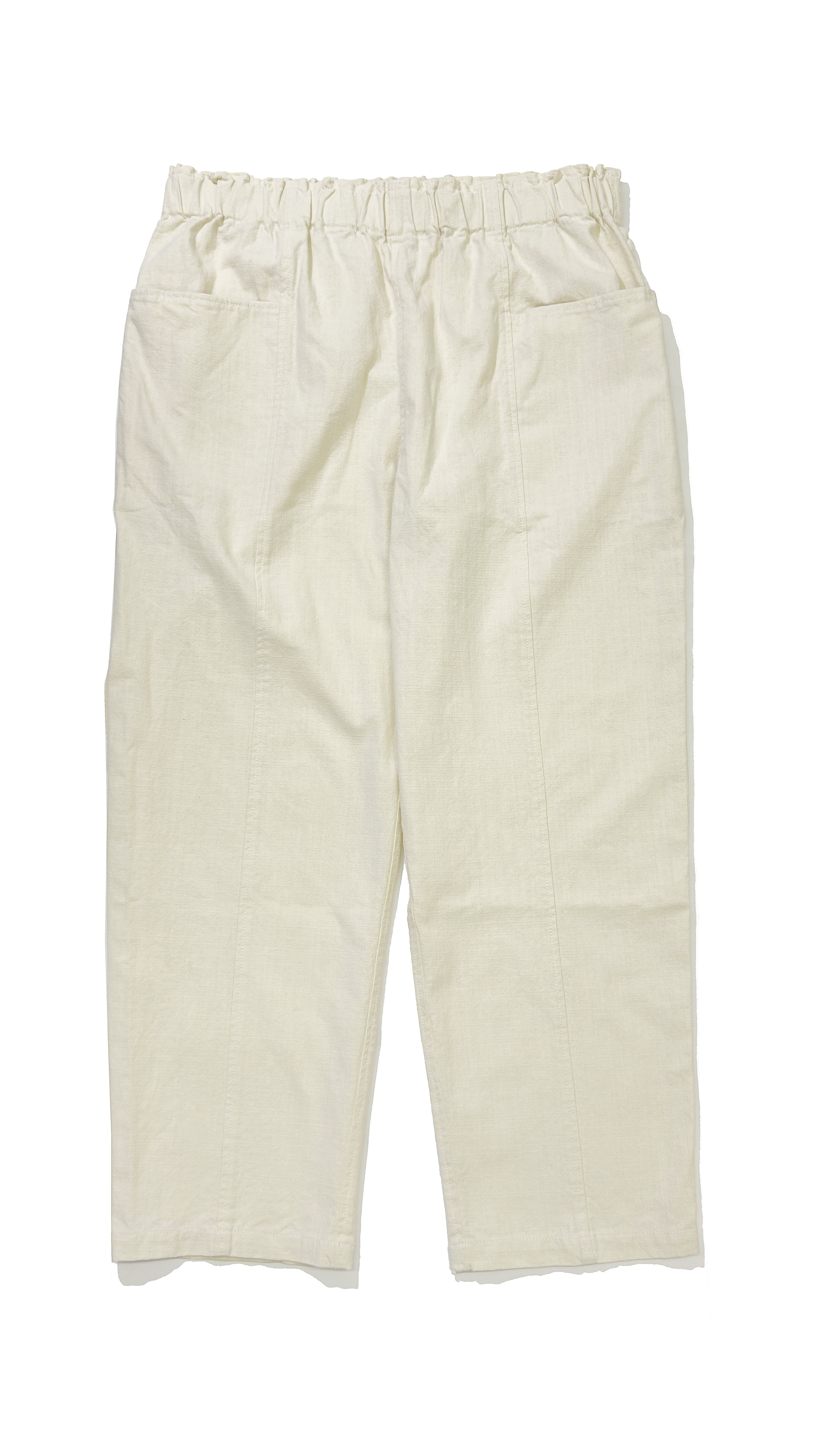 ウエストはゴム&ドローコード仕様。ベルト要らずの快適さながら、BIGMIKEらしい計算されたシルエットで、Tシャツ一枚でも大人らしくまとまります。