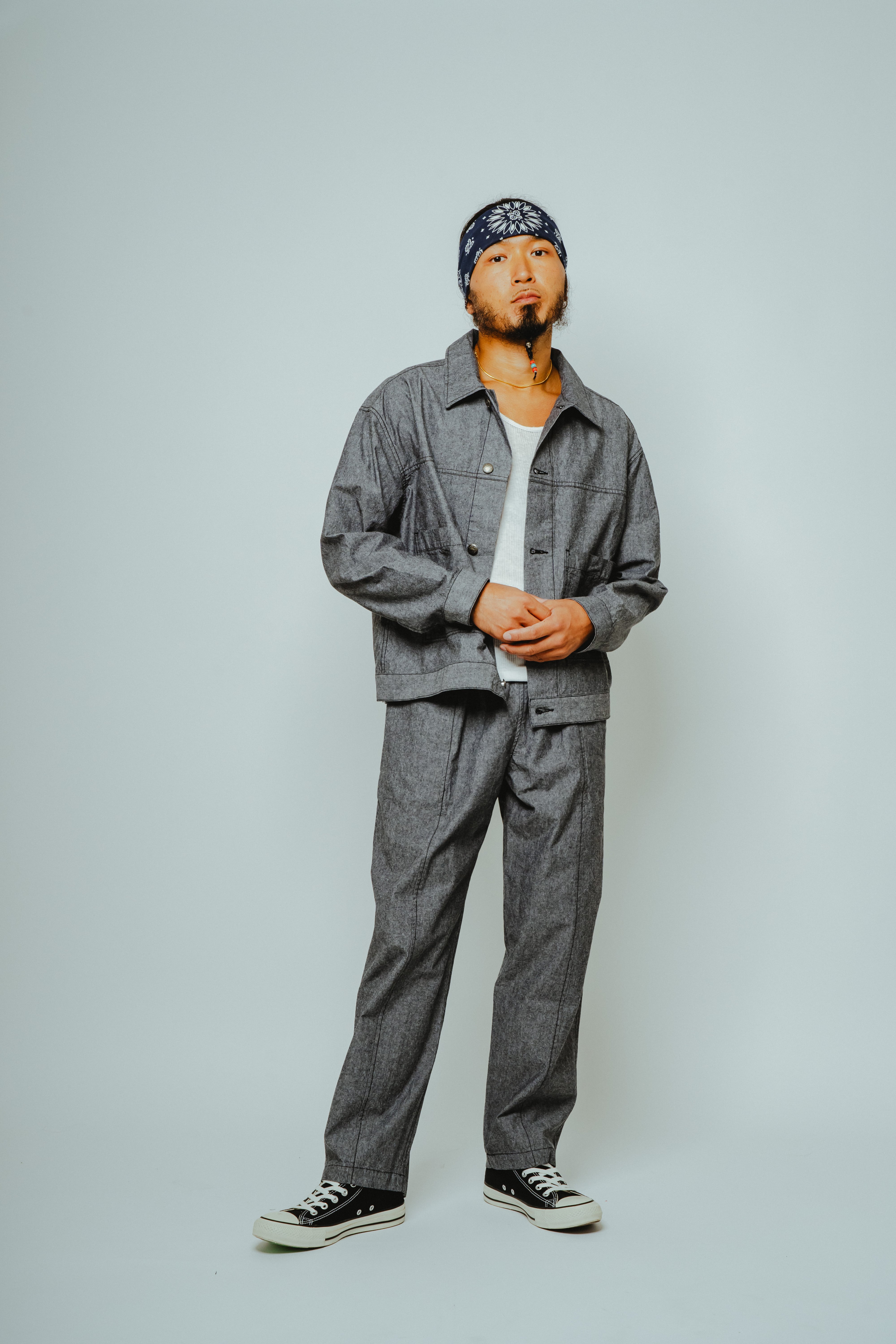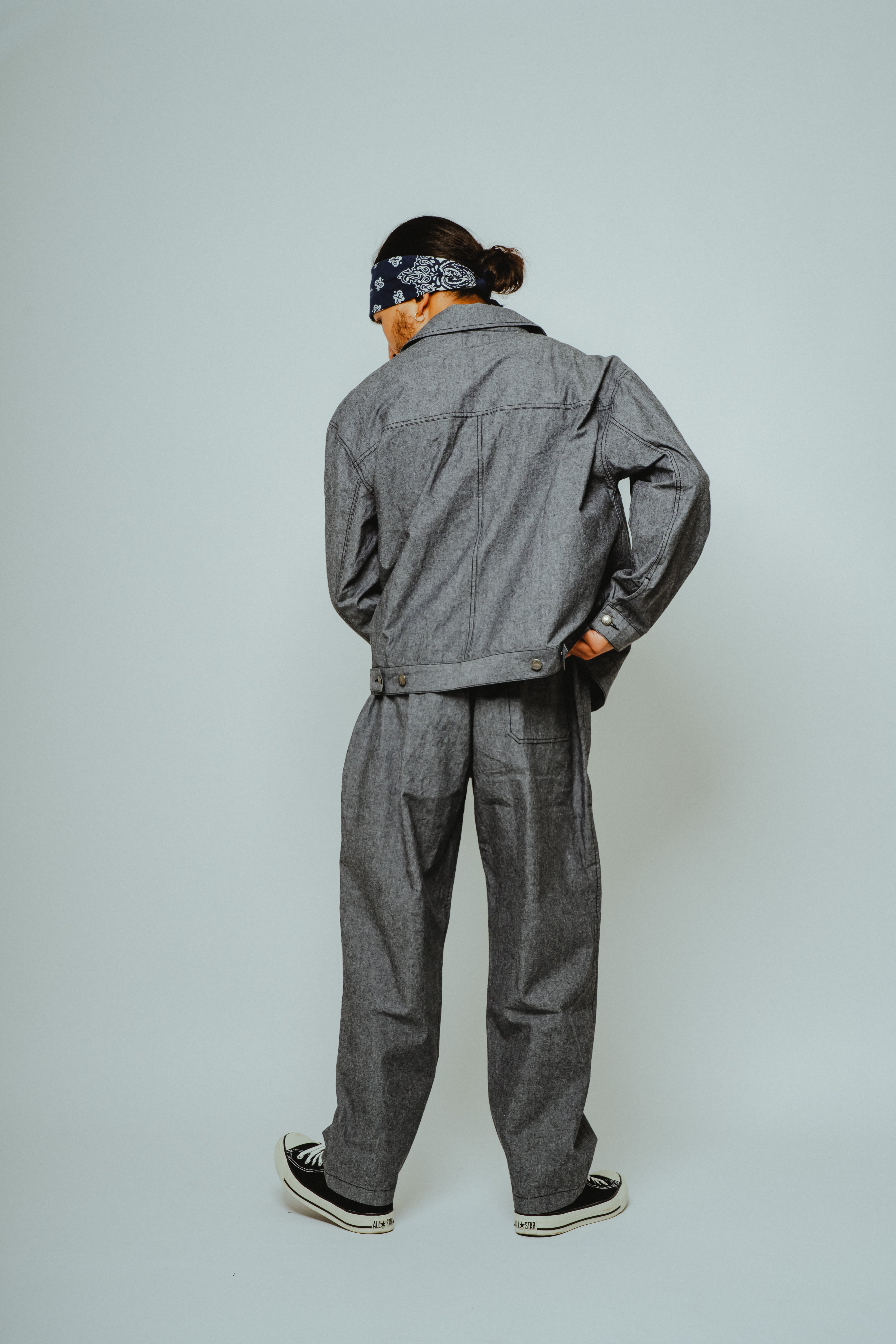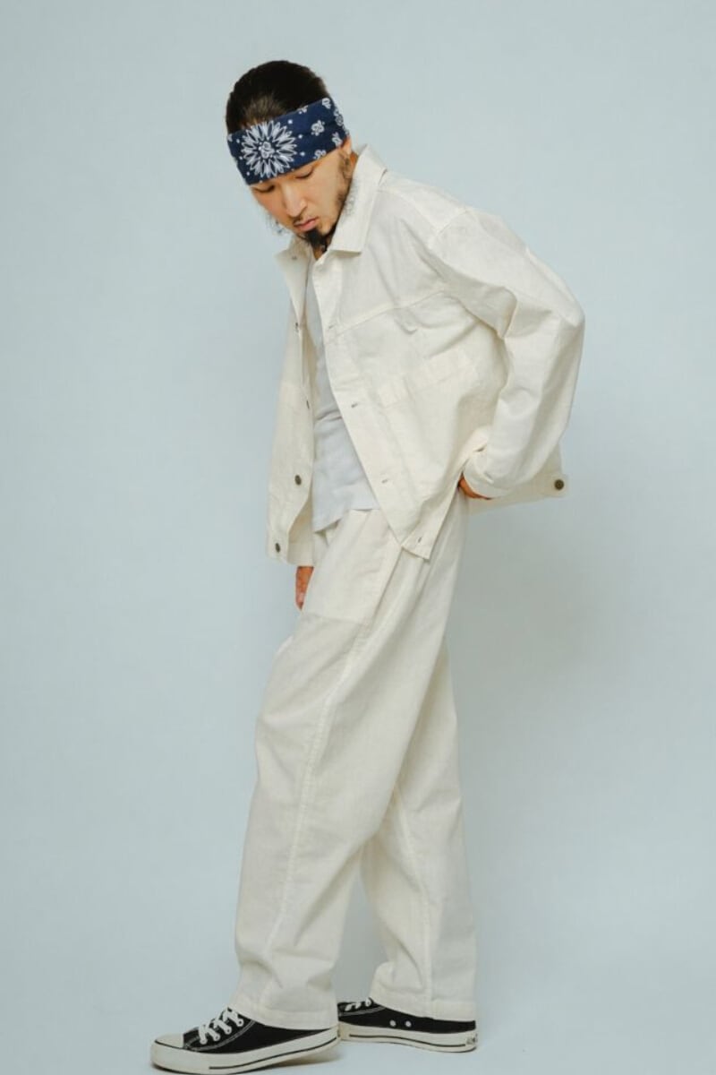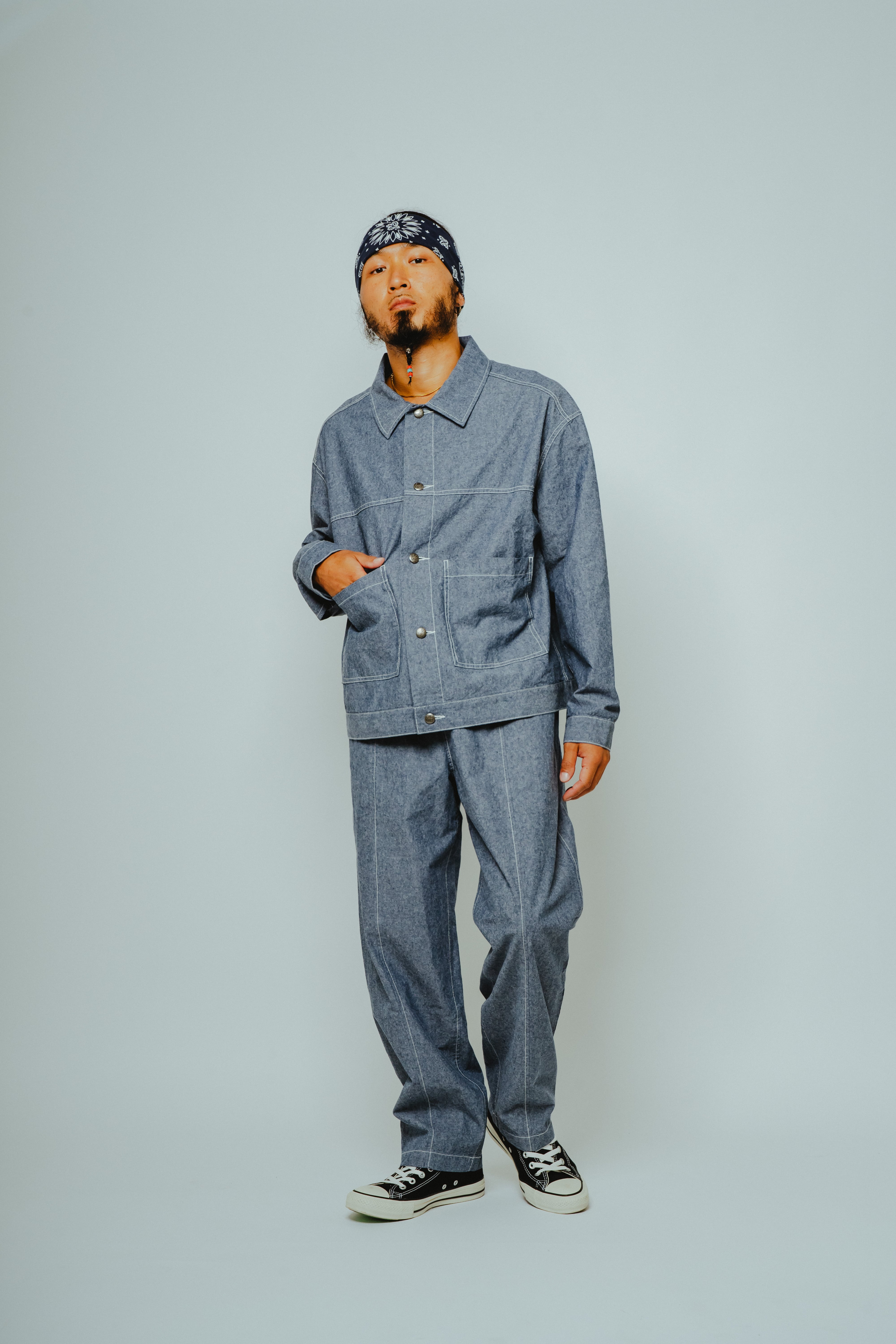 同素材のトップス(別売り)と合わせれば、清涼感のあるワークセットアップが完成。クラシックなアメリカンワークを、現代のタウンユースへ昇華します。