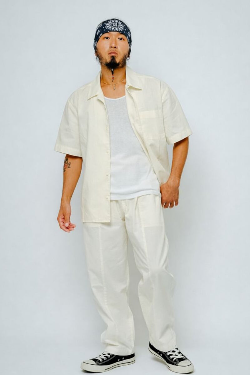 見た目はヴィンテージのワークパンツのような表情を持ちながら、穿き心地は驚くほどストレスフリー。汗ばむ季節でも肌に張り付かず、ドライな質感を保つ、日本の夏に最適なアメカジパンツです。