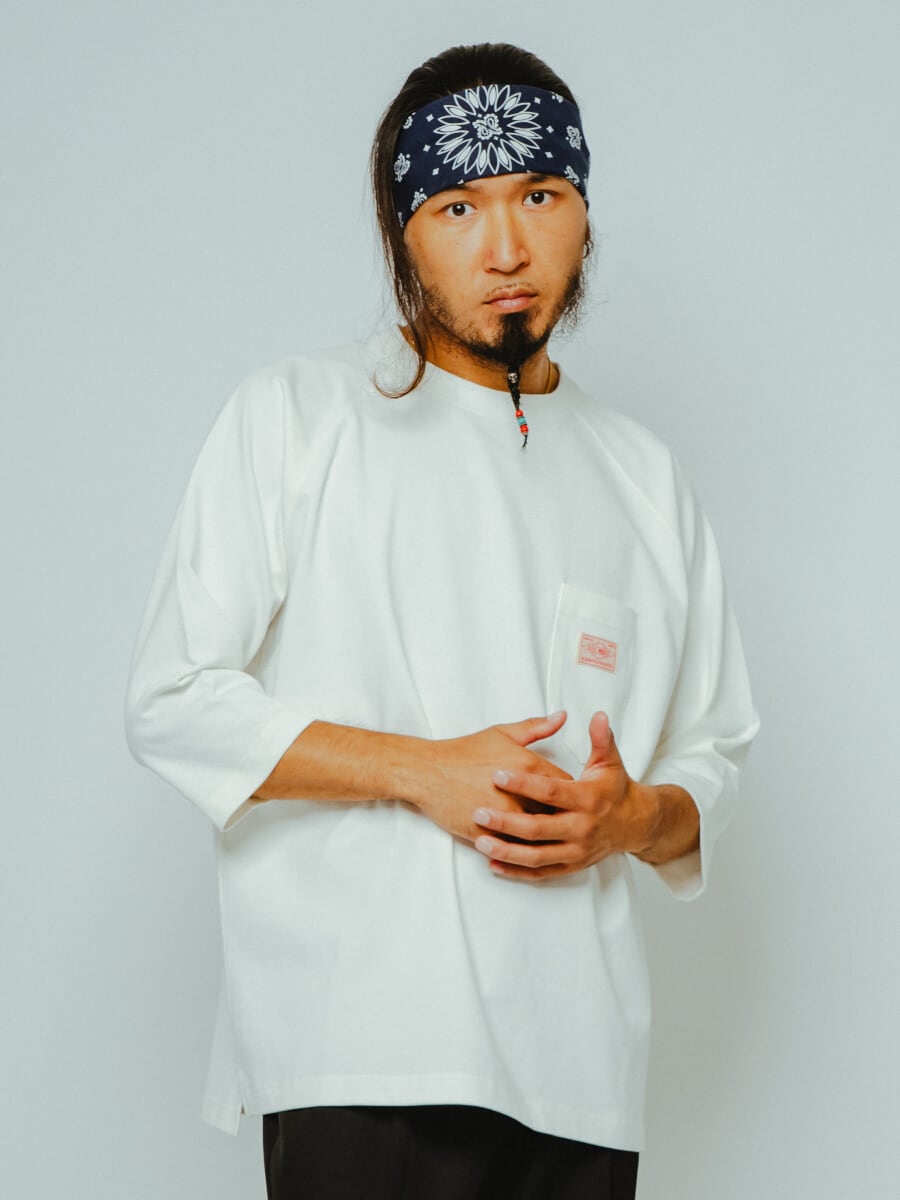 胸元にはアイコンであるサングラスポケットを装備。袖はバランスの取りやすい7分袖仕様。