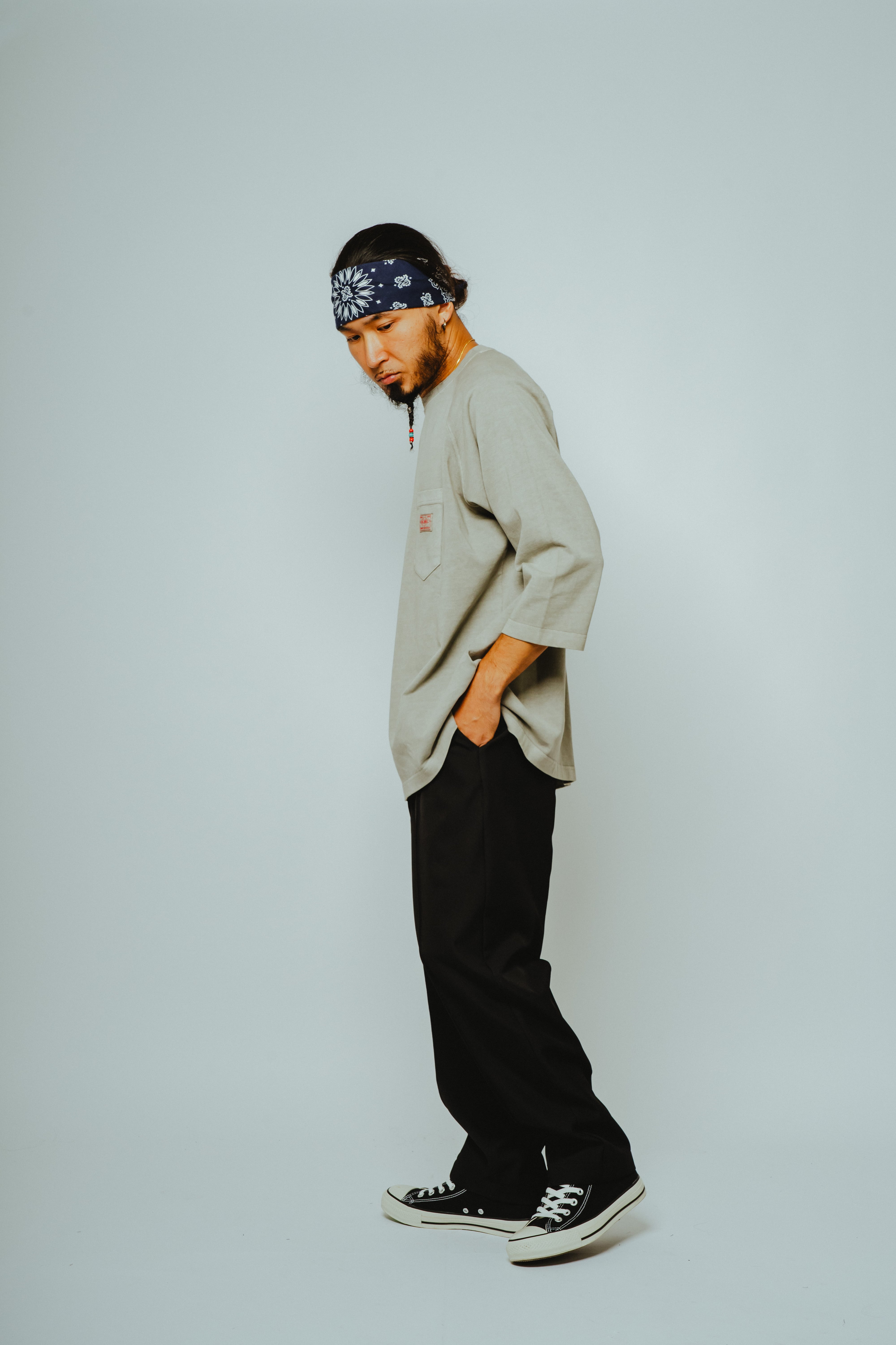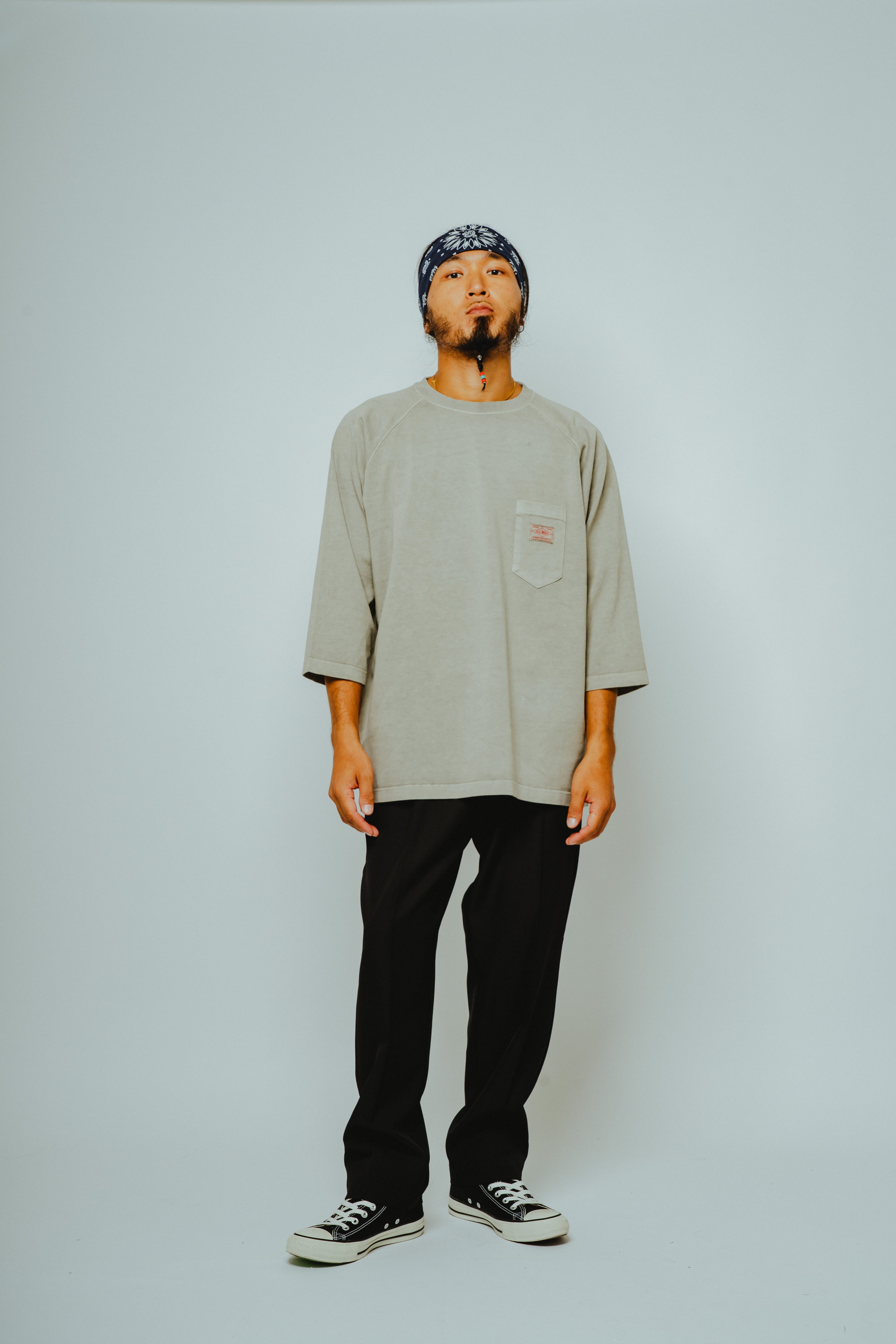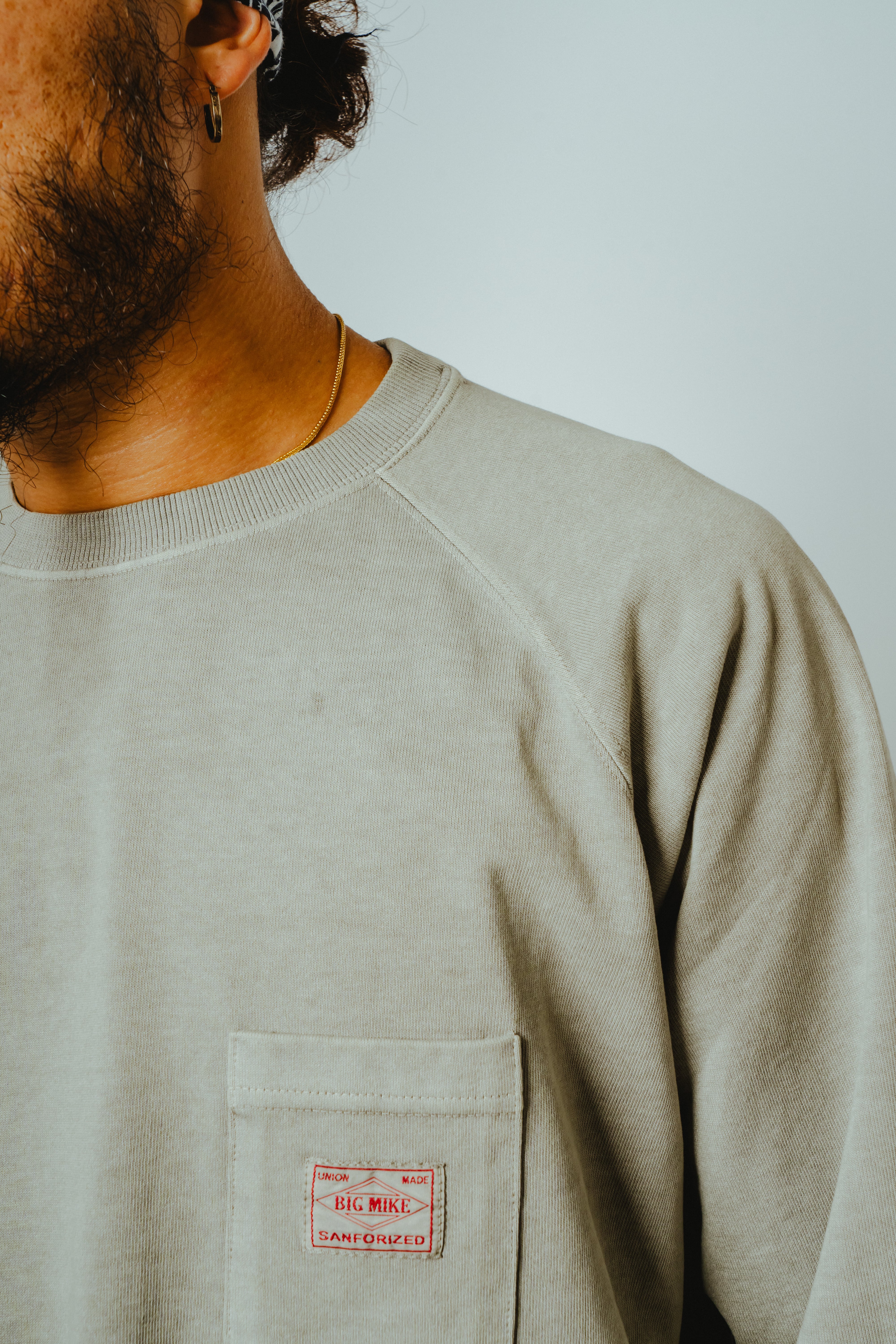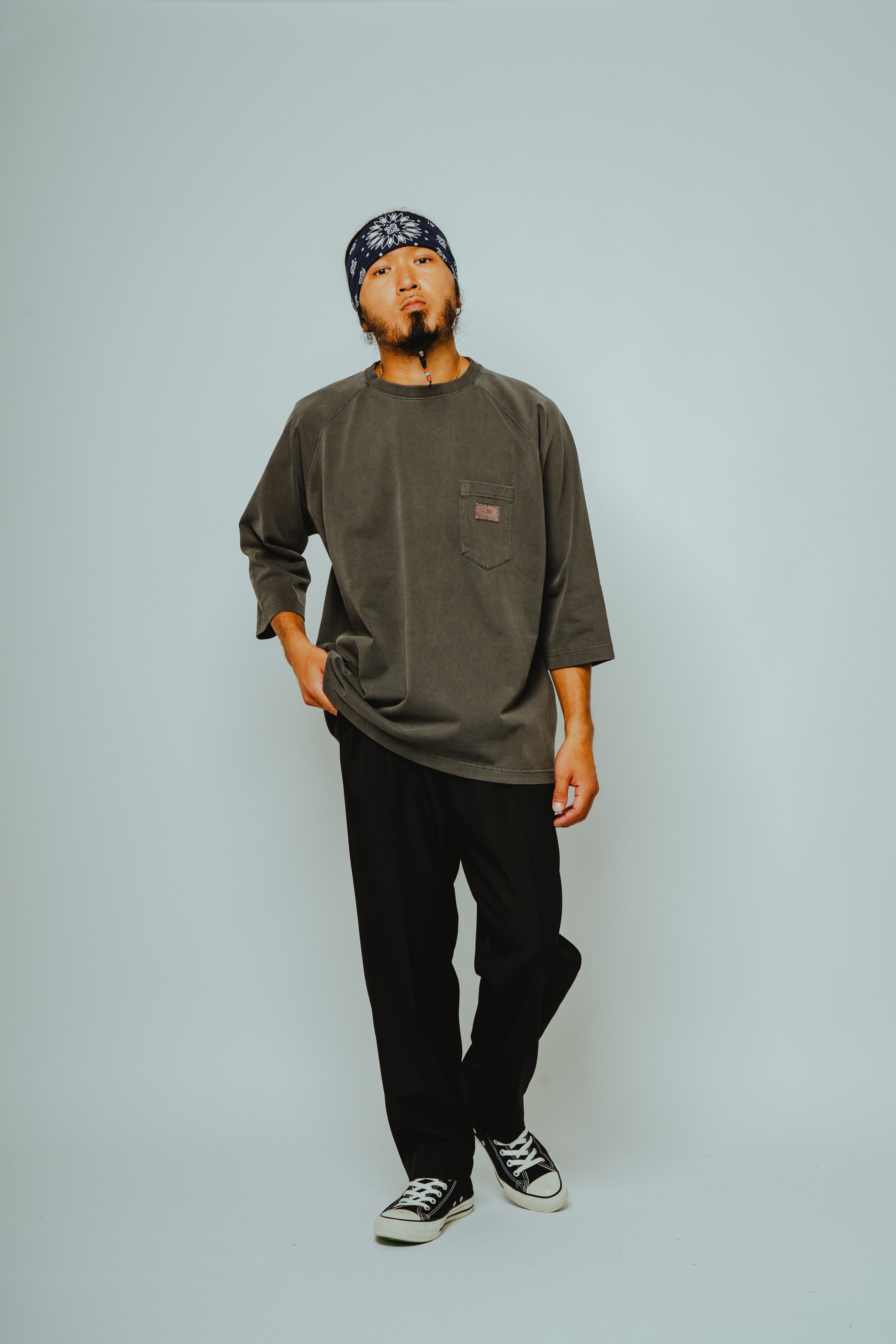 ボディには、BIGMIKEの代名詞であるヘビーウェイトコットンを採用。透けにくく、型崩れしにくい肉厚な生地感で、ラフに扱っても頼れる一枚に仕上げています。