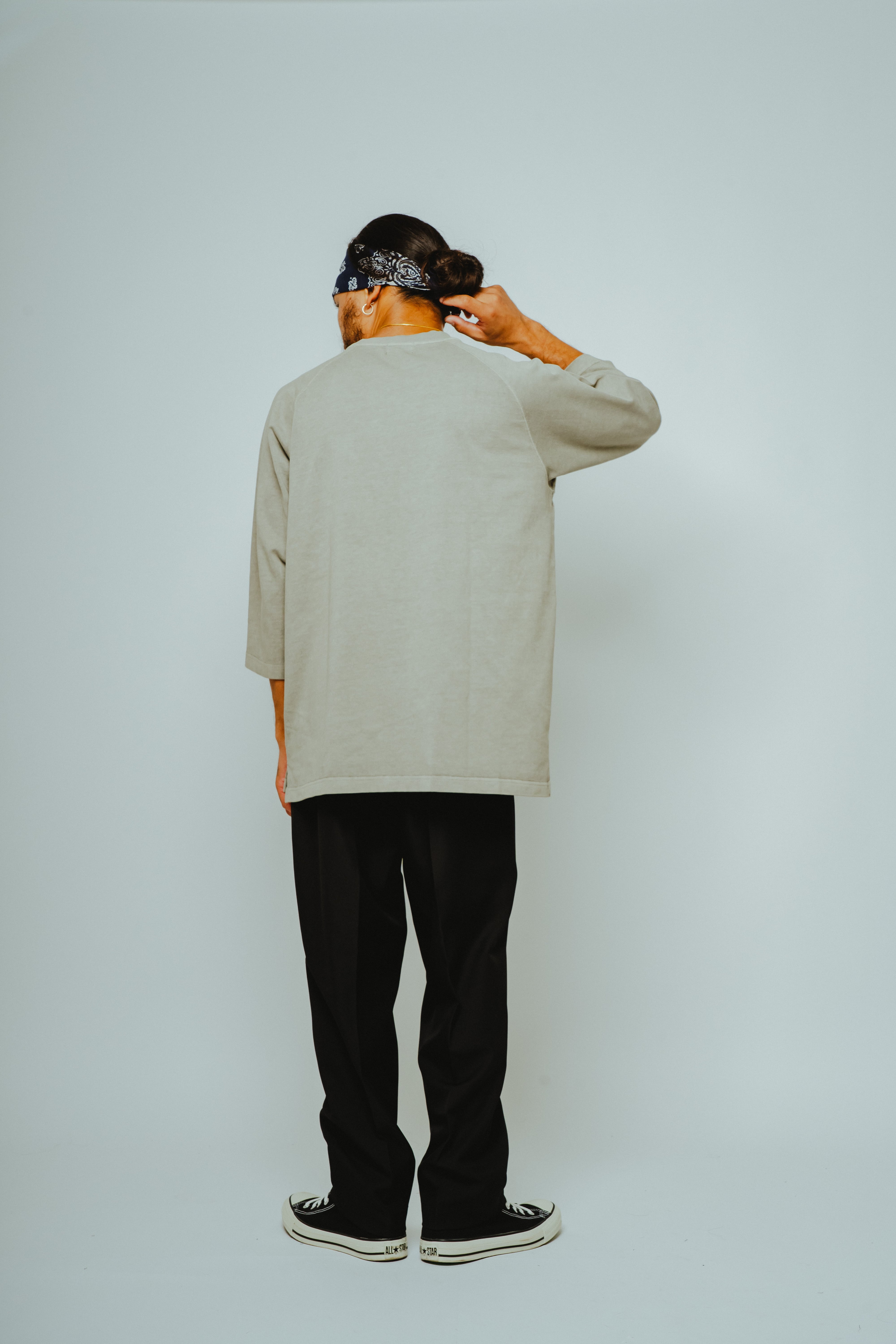 半袖より落ち着きがあり、長袖ほど重くない。季節の変わり目にも使いやすい絶妙な丈感です。