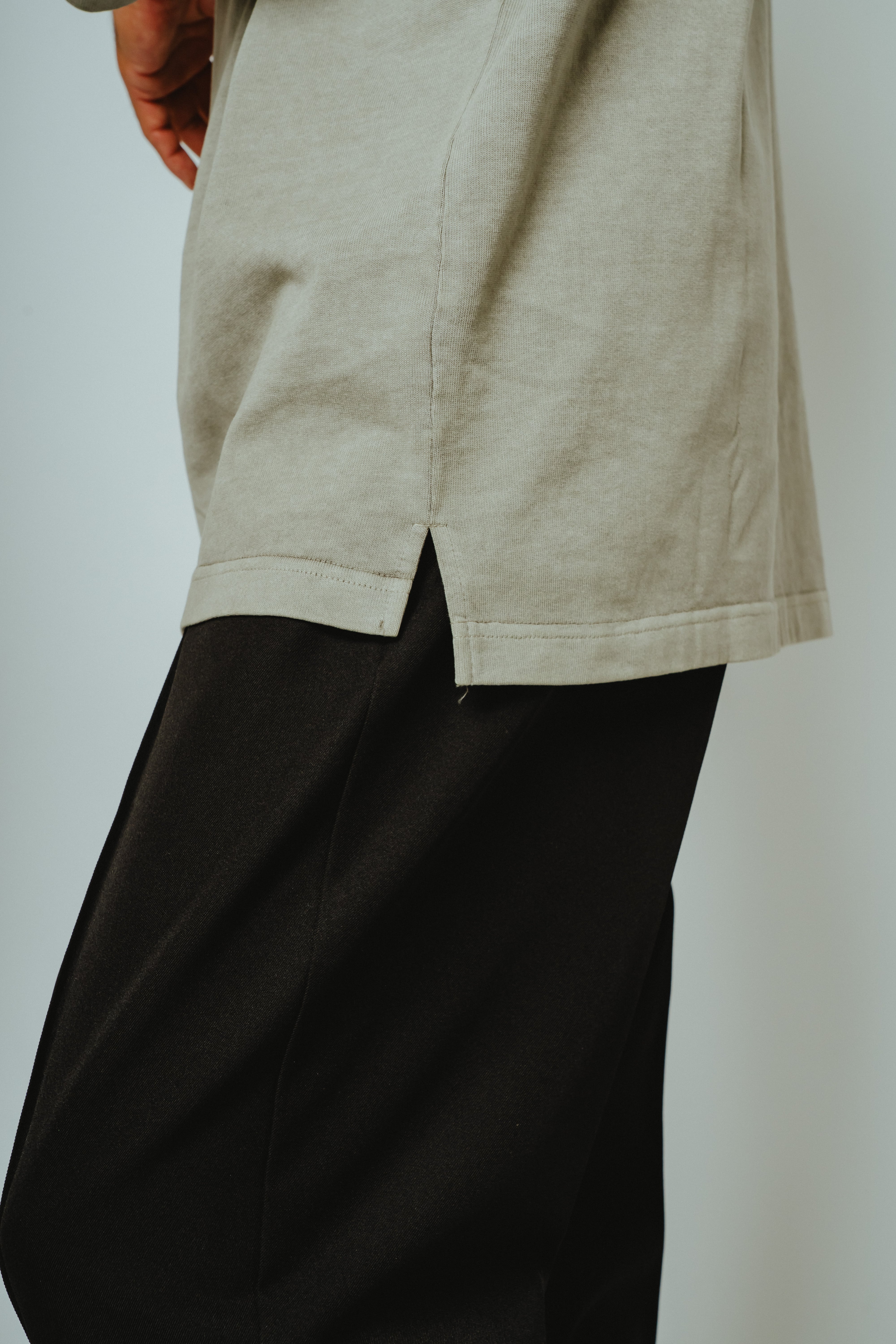 新品なのに、どこか着慣れたような表情。顔料を用いたピグメント染めにより、繊維の奥まで染め切らず、表面に色をのせることで生まれる独特のフェード感。まるで長年着込んだかのような、柔らかく落ち着いた色味が特徴です。