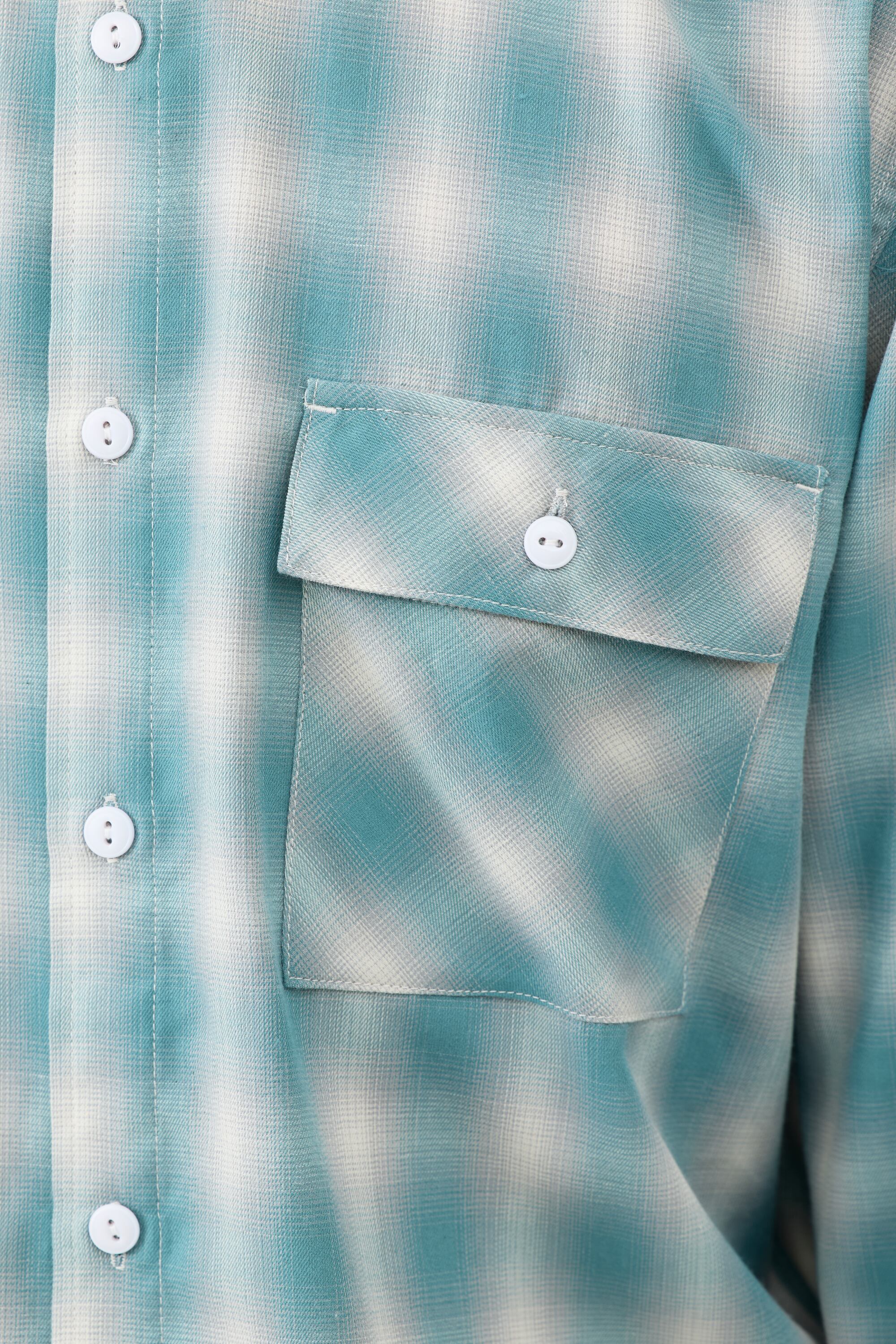 レーヨン特有の滑らかな肌触りと自然なドレープ感が、ワークシャツに程よい上品さをプラス。オンブレチェックの色味も現代的に調整し、ラフに着ても野暮ったくならない印象に仕上げています。