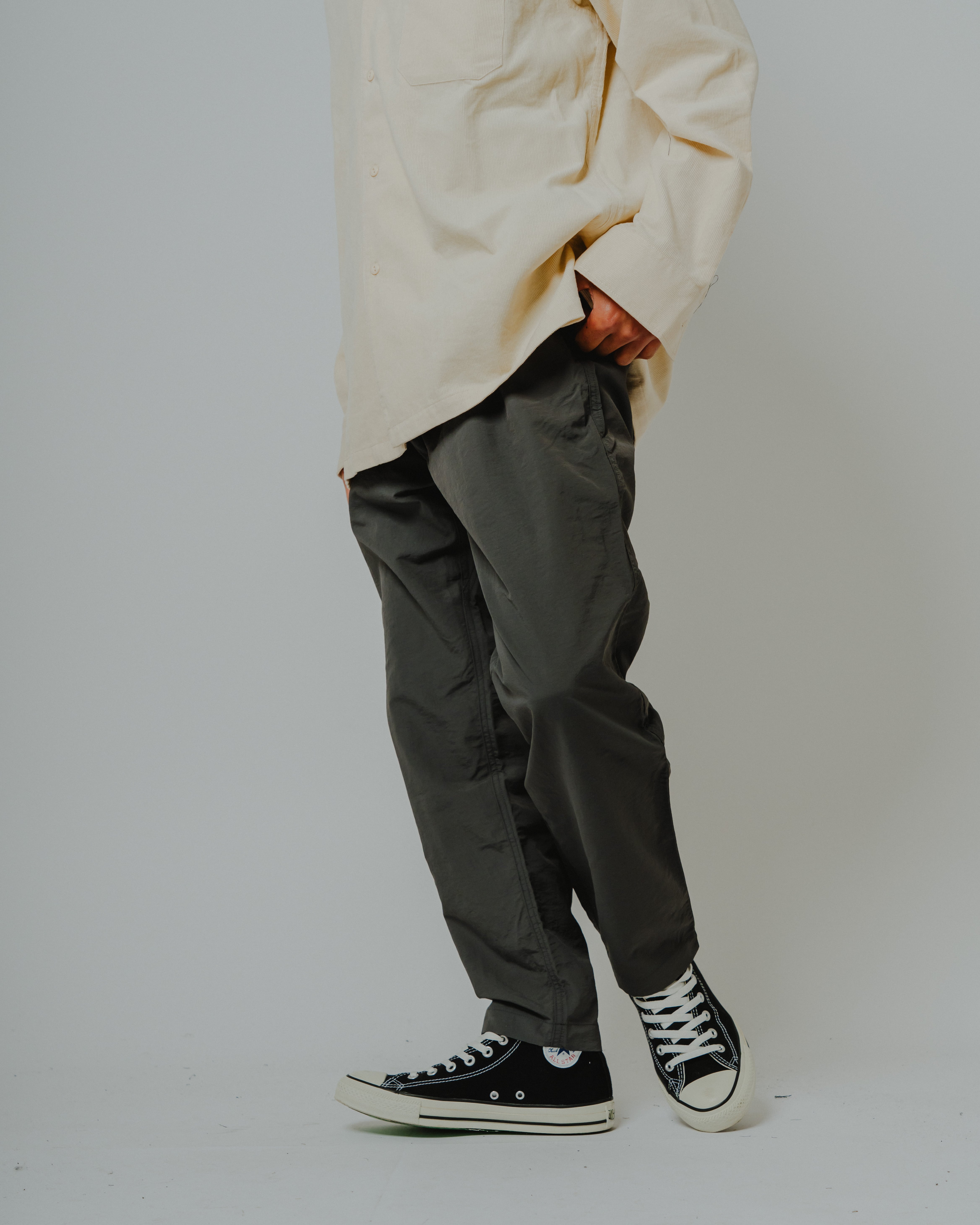 気の利いたカジュアルイージーパンツのリリース。撥水加工したナイロン素材を使用したアクティブなシュチュエーションにピッタリな毎日履きたくなる快適な仕上がりです。