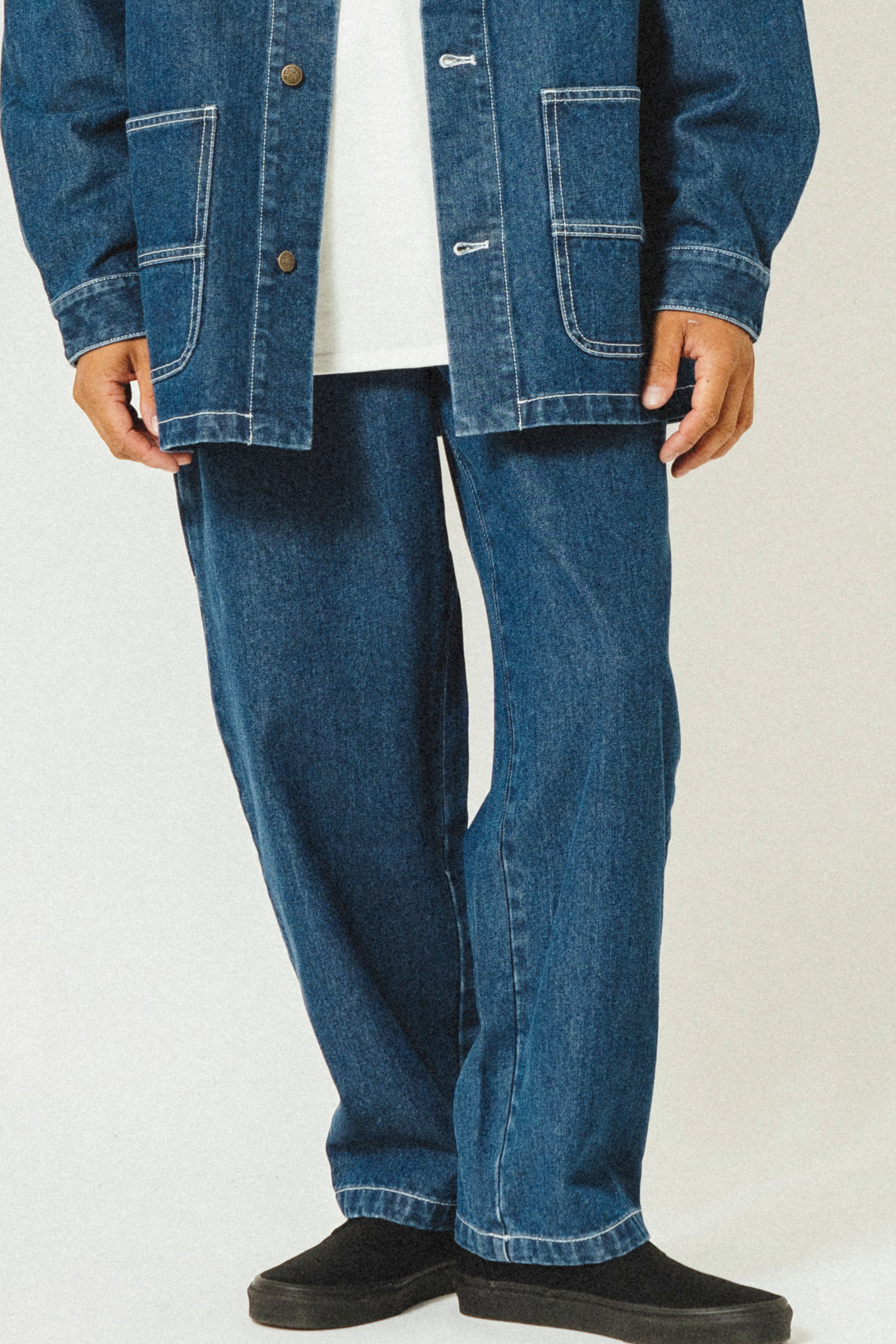 ペンキ職人が作業用として着用していたワークパンツ。ハンマーループやスパナポケットなど代表的なディティールはそのままに裾幅を少し広くし、ややワイドストレート気味にシルエットを調整。【TC Twill No Tack Chino Work Pants - 102337200】に近い印象です。