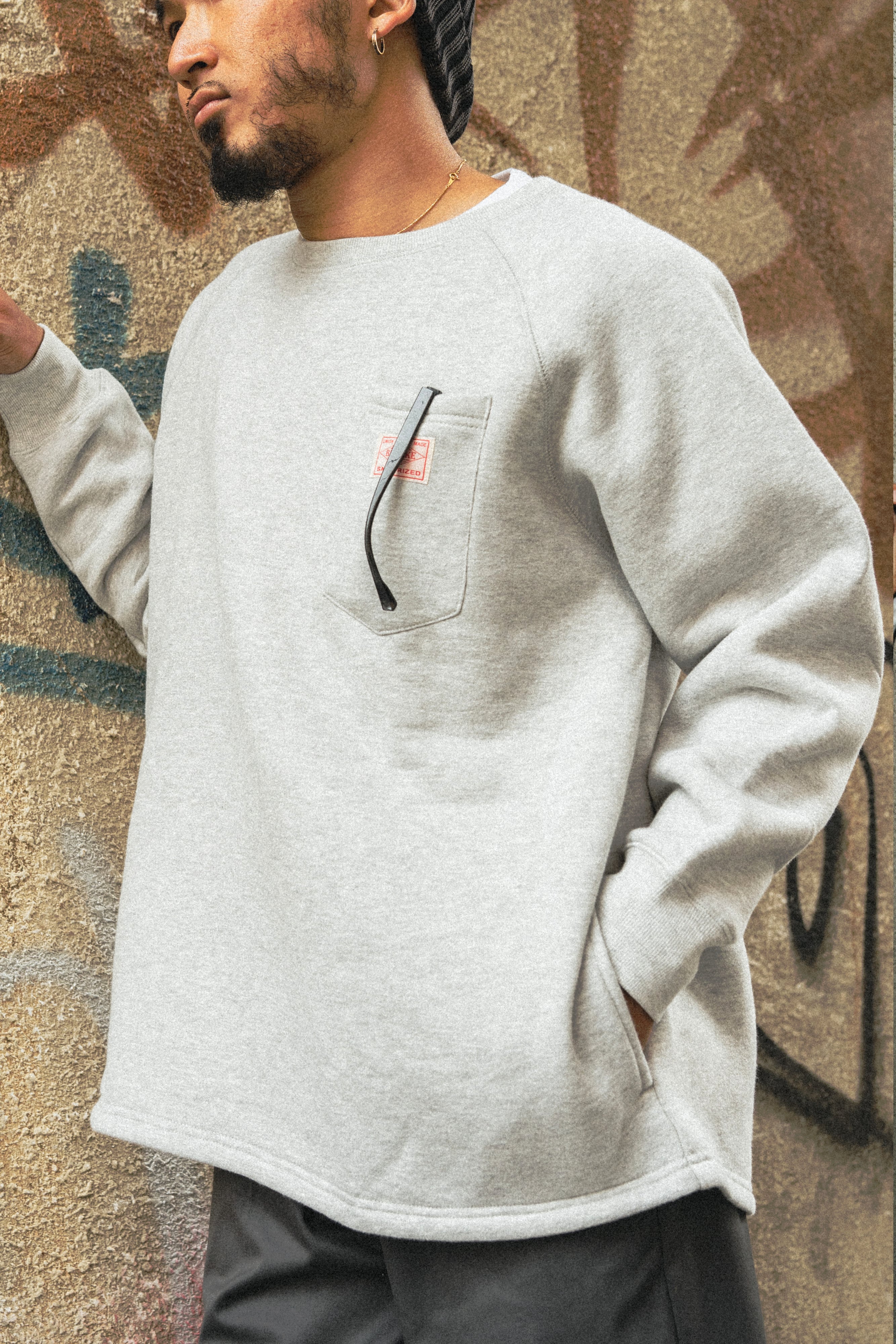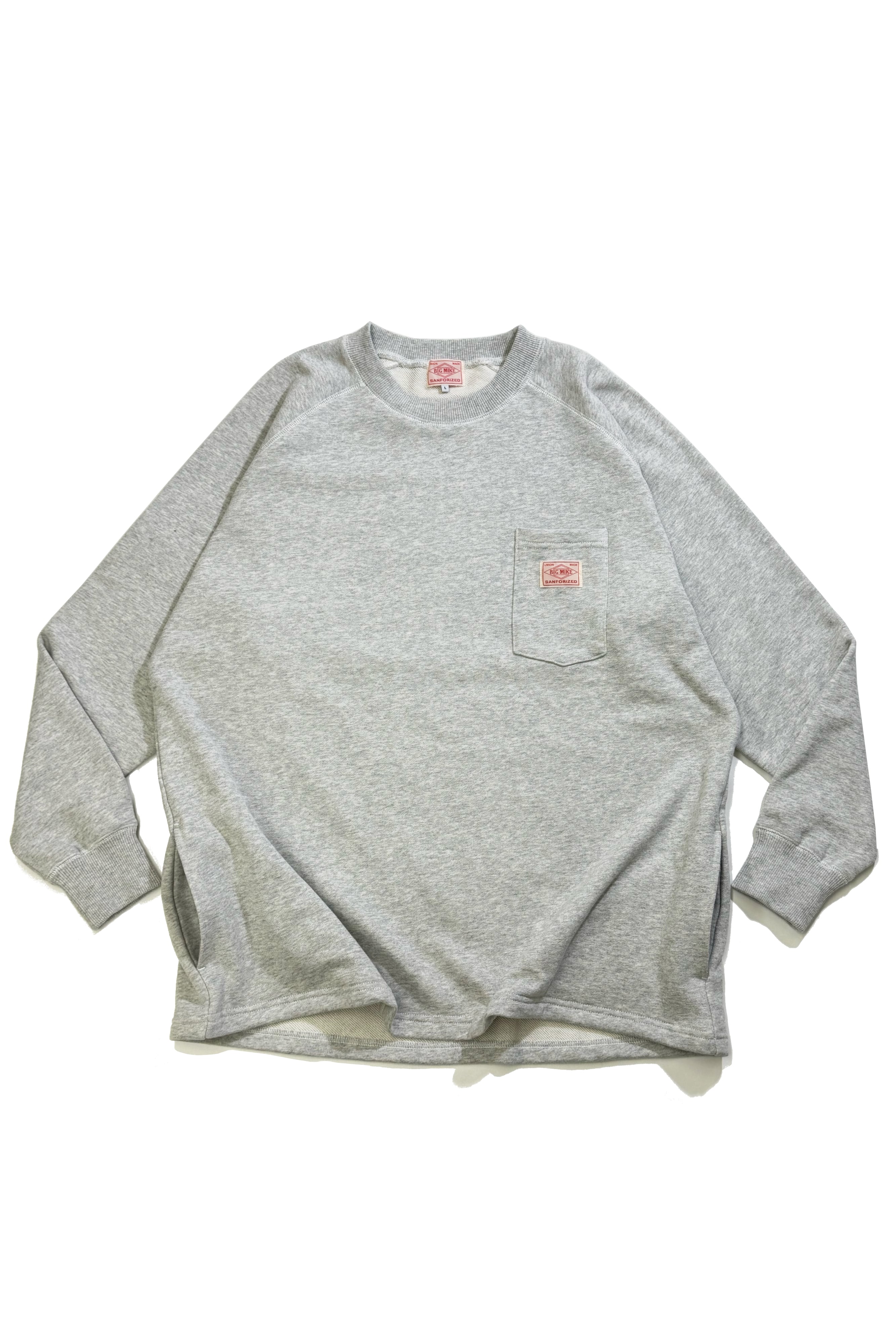 コットン100%の優しい肌触り、胸元サングラスポケット、両サイドにハンドポケット、浅めのクルーネックにラグランスリーブなどベーシックなスウェット裏毛は春秋は勿論、肌寒い季節にもコート類のインナーにいかがでしょうか?