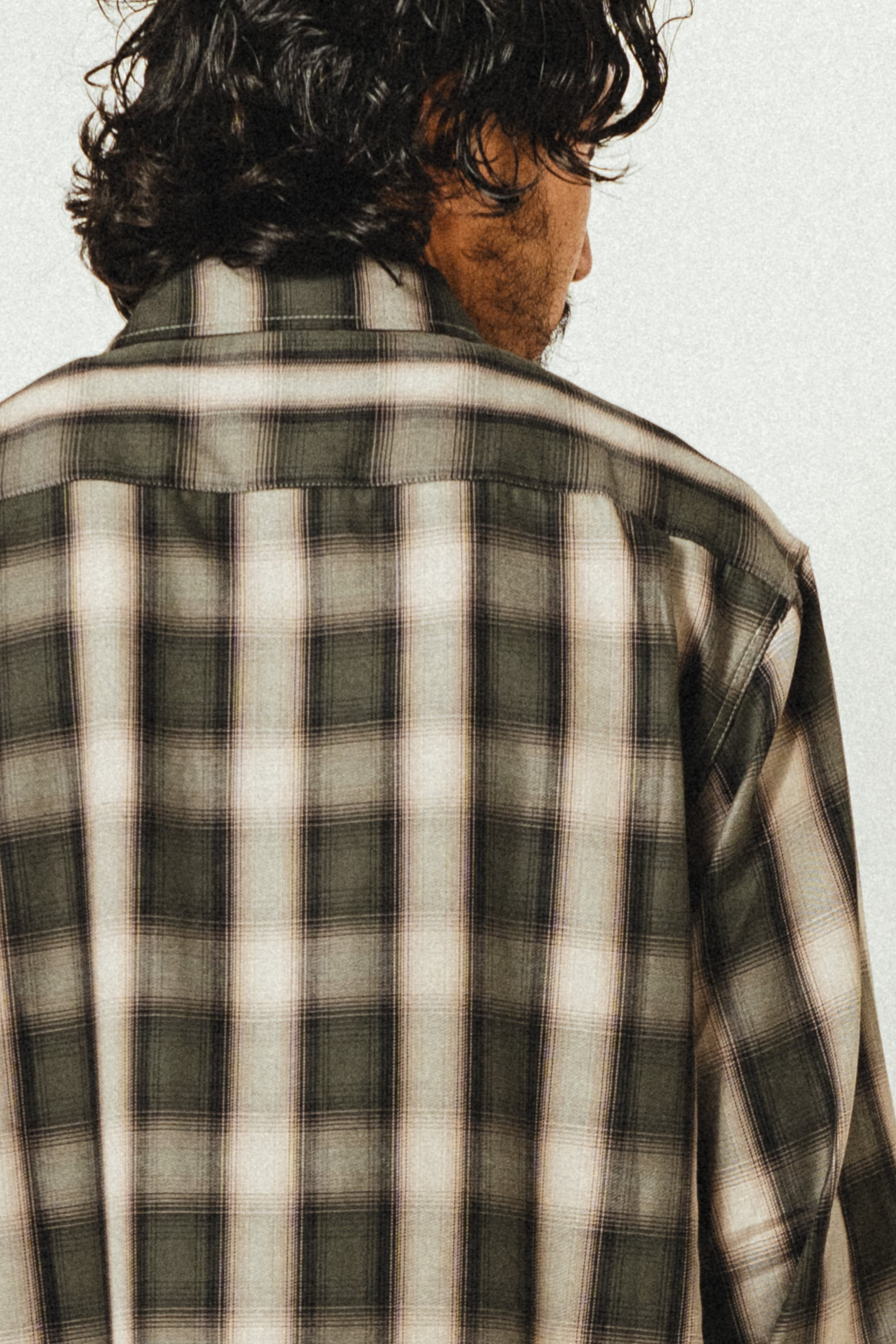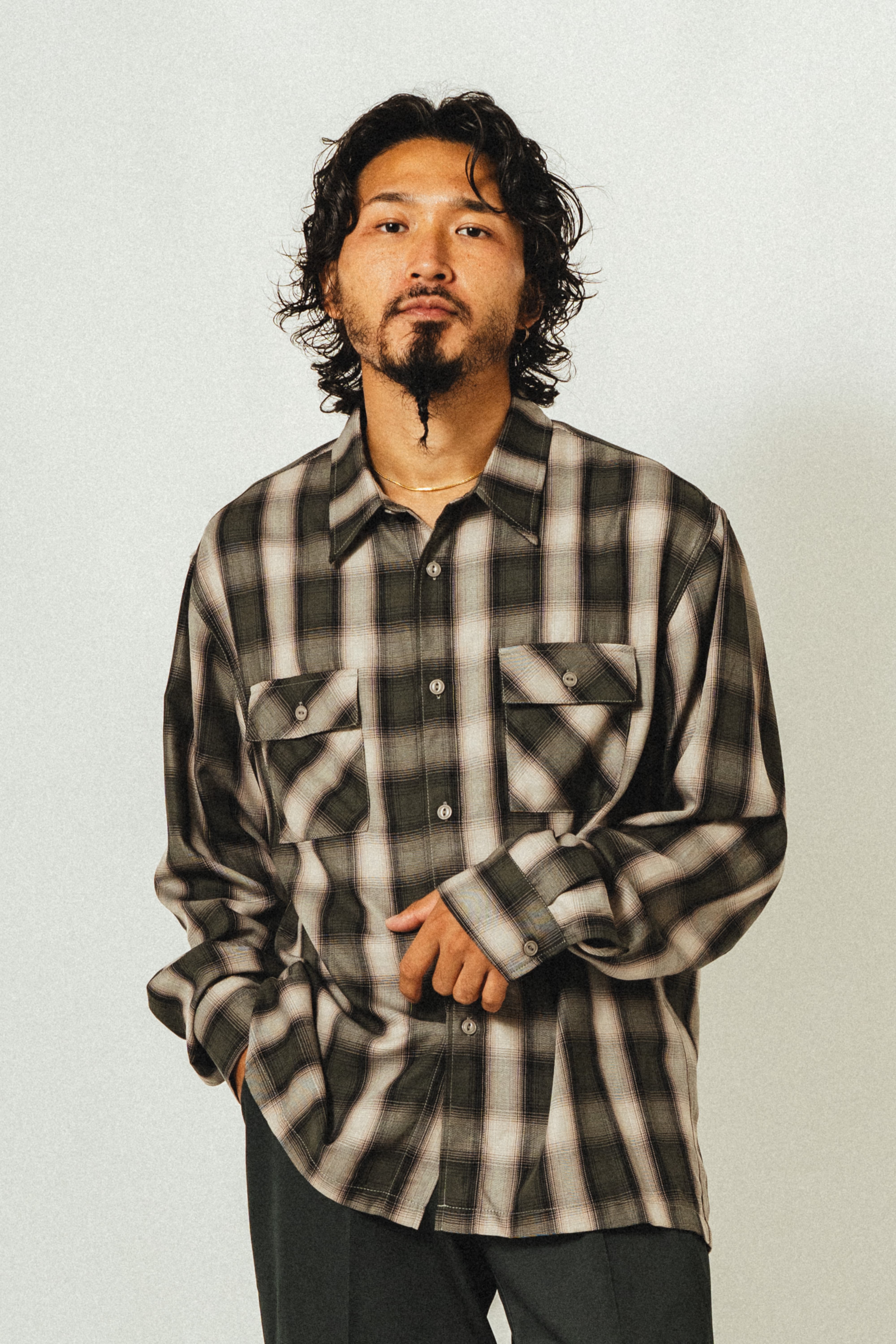 色味とチェックの表現は現代ニーズに置き換えながらも、当時の雰囲気を感じさせる。猫目ボタン、2本針巻き縫い、フラップ付き胸ポケットなどビンテージワークシャツのディテールを忠実に再現し現代シルエットにフィットさせました。